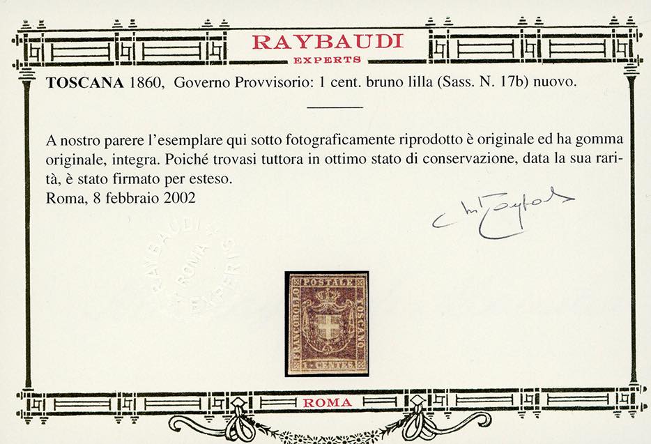 Lotto 642 - 1860 - 1 cent. bruno lilla (17b), nuovo, gomma originale ...
