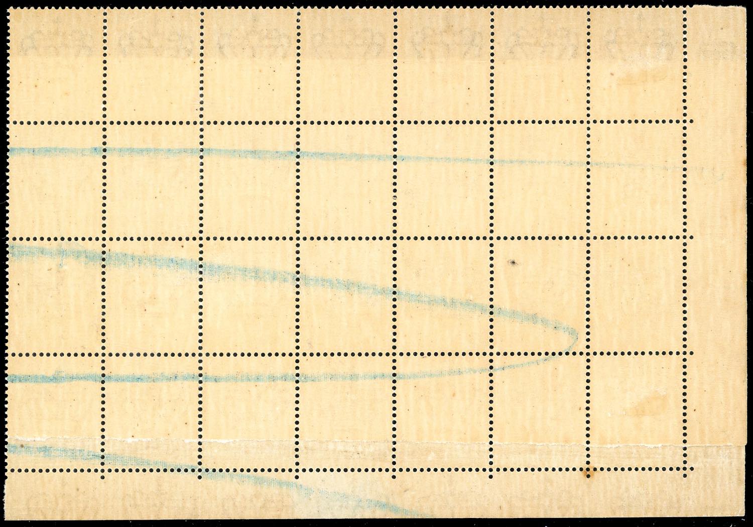 1929 - 50 cent. Imperiale, blocco di 28 esemplari, tutti stampati su carta ricongiunta (251e), angolo di foglio, nuovo, gomma originale integra, perfetto, segni di biffatura al verso. Molto raro. Cert. Ferrario.
