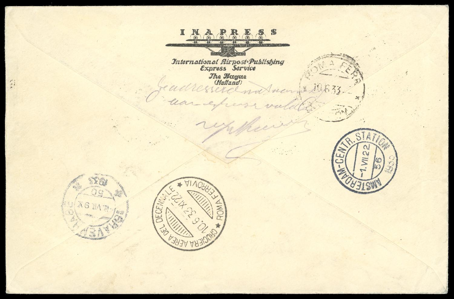 1933 - 5,25 + 19,75 lire Trittico I-GIOR (51C), perfetto, su aerogramma raccomandato espresso da Roma 9/6/1933 per l'Olanda, bolli di ... Leggi tutto