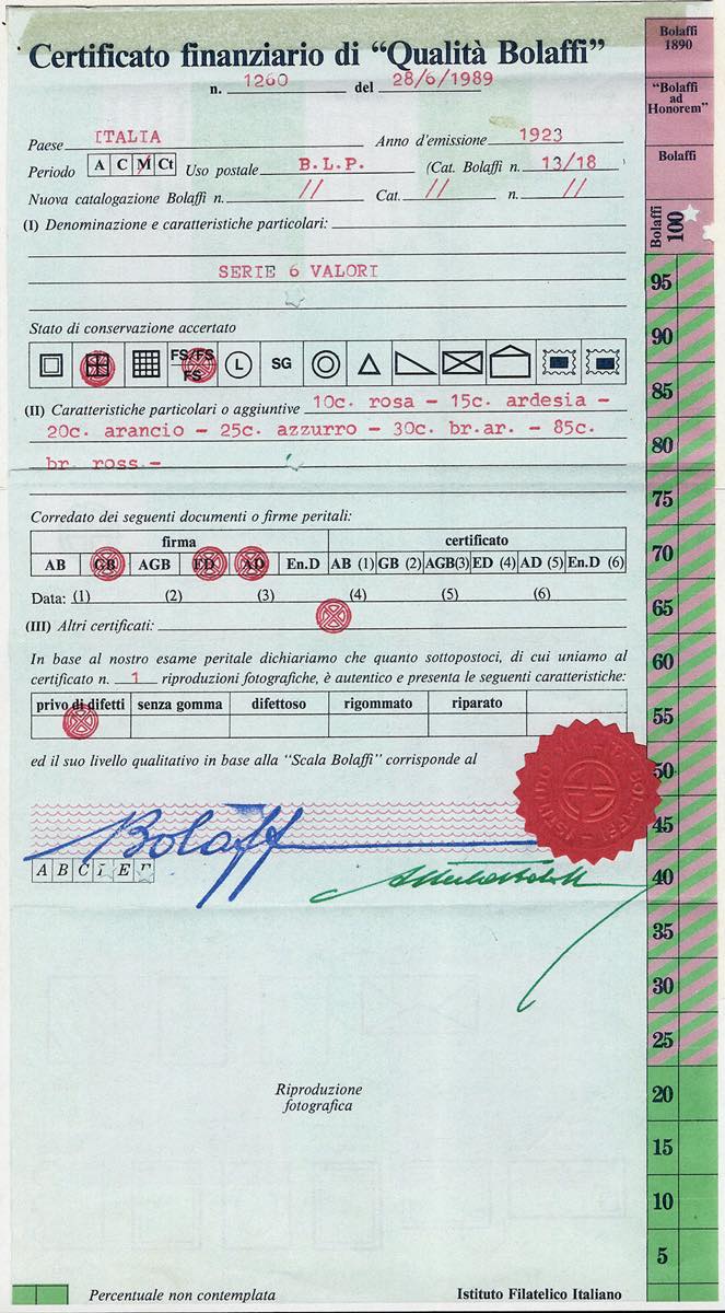 Lotto 1191 - 1923 - Soprastampati BLP, III tipo, serie completa (13/18), ...