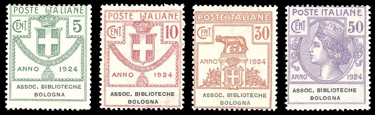 ASSOC.BIBLIOTECHE BOLOGNA 1924 - Serie completa (1/4), gomma originale integra, perfetti. Ferrario.