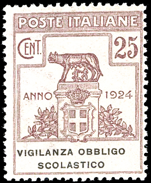 VIGILANZA OBBLIGO SCOLASTICO 1924 - 25 cent. (69), nuovo, gomma originale integra, perfetto.