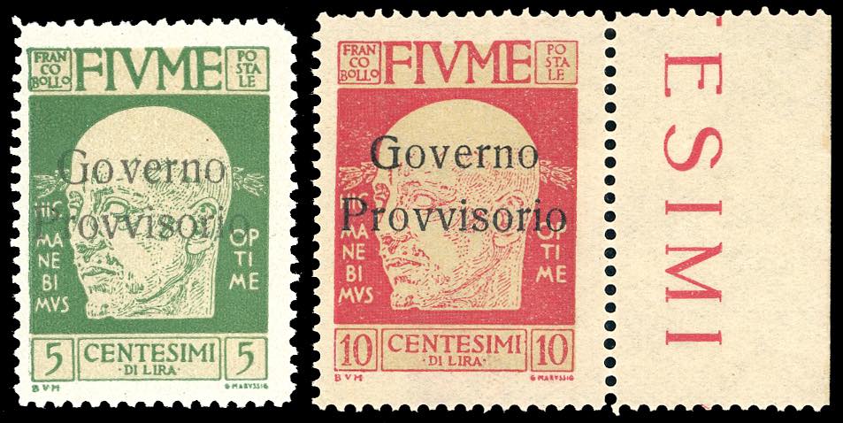 FIUME 1921 - Soprastampati "Governo Provvisorio", senza trattino in basso, tiratura di Milano, serie completa (177/178), gomma originale ... Leggi tutto