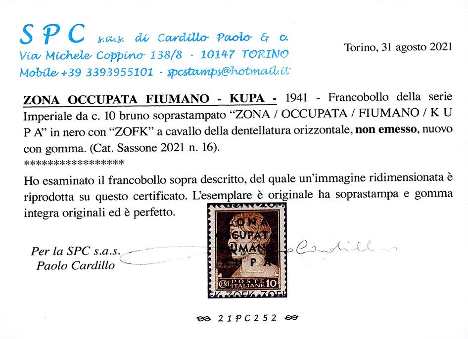 Lotto 2007 - ZONA FIUMANO KUPA 1941 - Imperiale soprastampati, non ...