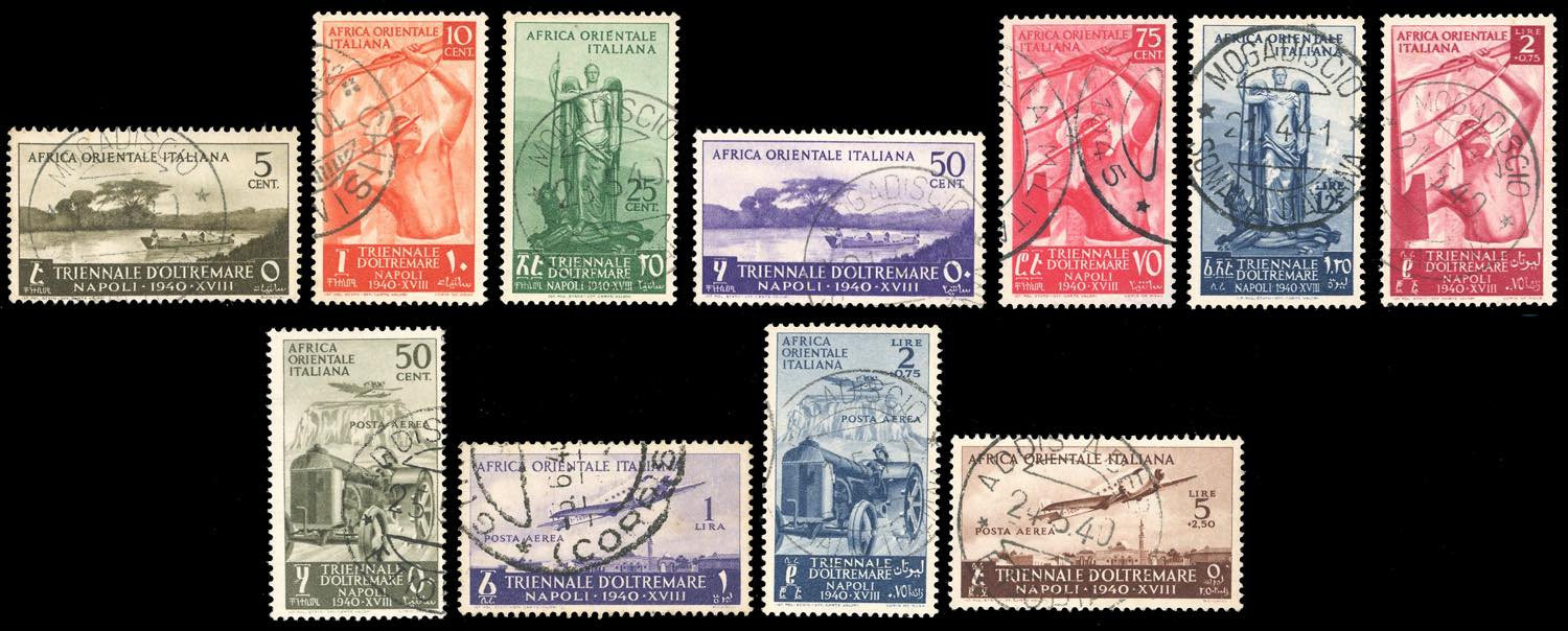 1940 - Triennale, serie completa (27/33+A), usati con annulli originali, perfetti. Rari i due alti valori di posta aerea usati. Ferrario per i valori di posta aerea.