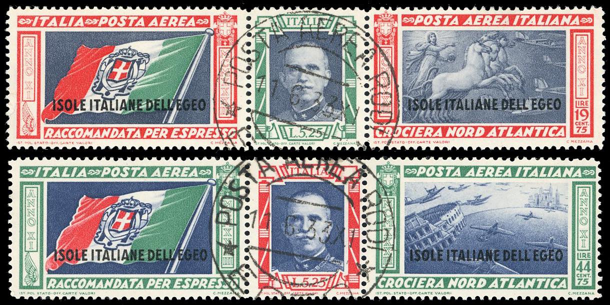 POSTA AEREA 1933 - Trittici Balbo, serie completa (28/29), usati con annullo originale, perfetti. Ferrario.