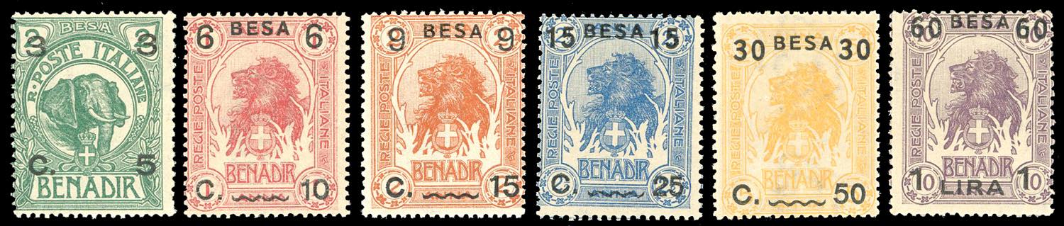 1922 - Soprastampati in moneta somala, serie completa (24/29), nuovi, gomma originale integra, perfetti.