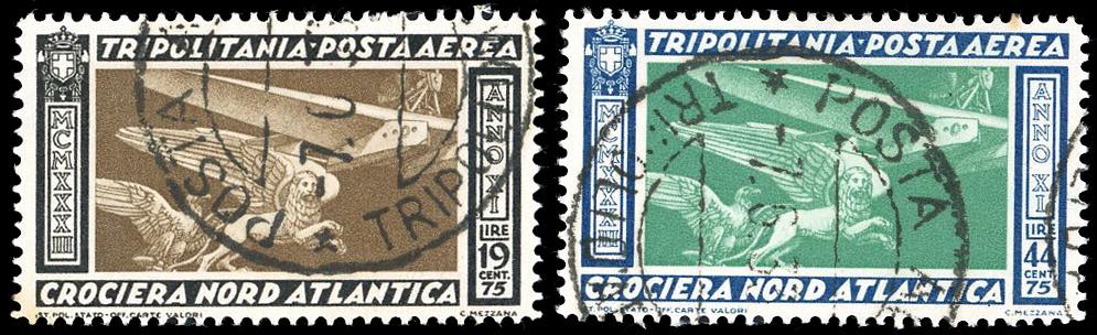 POSTA AEREA 1933 - Crociera di Balbo, serie completa (28/29), perfetti, usati con annulli originali. Cert. Manzoni, Ferrario.