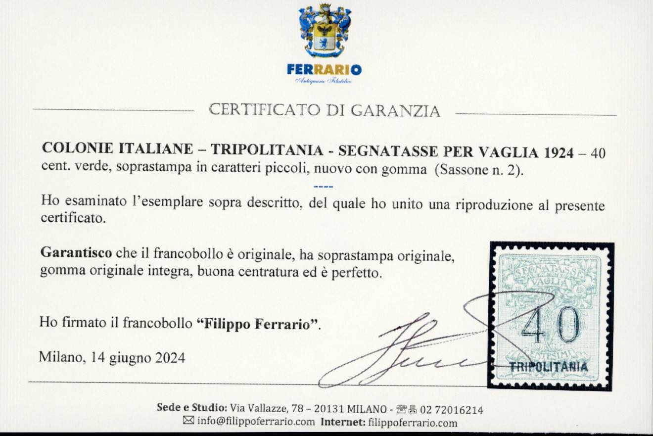 Lotto 2480 - SEGNATASSE VAGLIA 1924 - Soprastampa piccola, serie ...