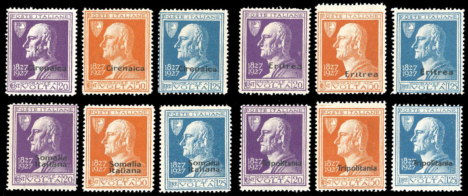 1927 - Volta, giro completo delle quattro Colonie, serie complete, nuovi, gomma originale integra, perfetti.