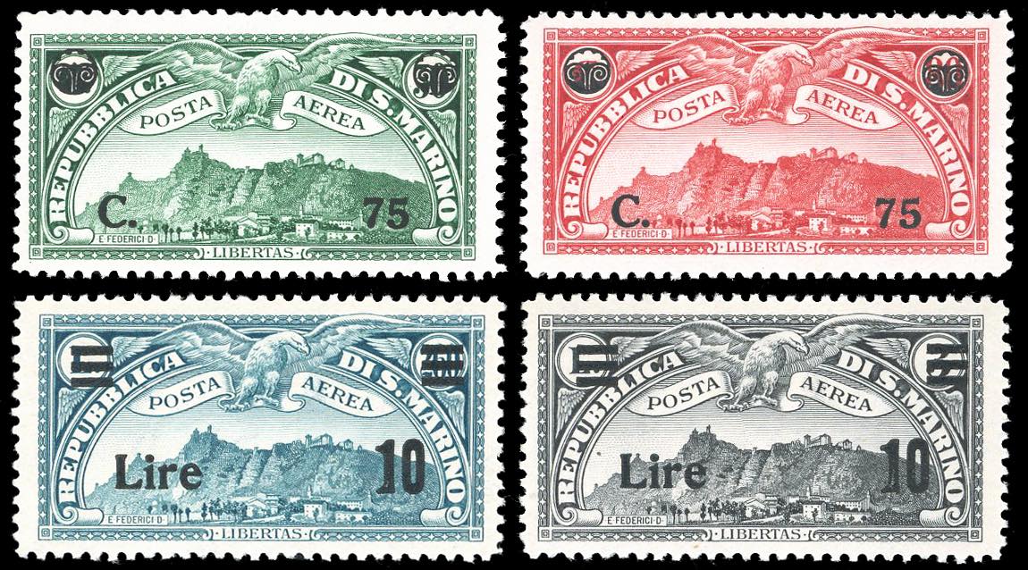 1936/42 - Soprastampati, le due serie complete (17/18,19/20), nuovi, gomma originale integra, perfetti. Ferrario.