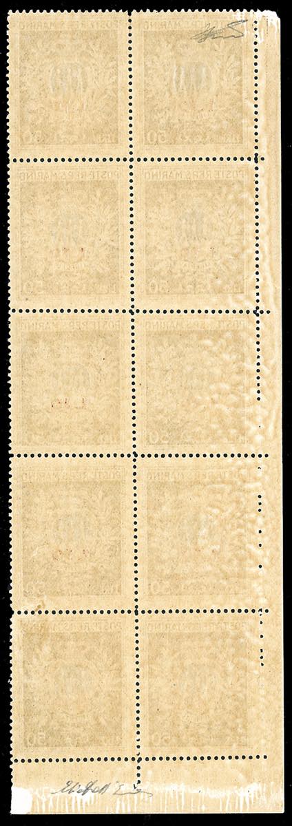 1946 - 10 lire su 50 lire Pro Opere Assistenza, minifoglio (7) non piegato, nuovo, gomma originale integra, perfetto e molto fresco. Cert. Ferrario.