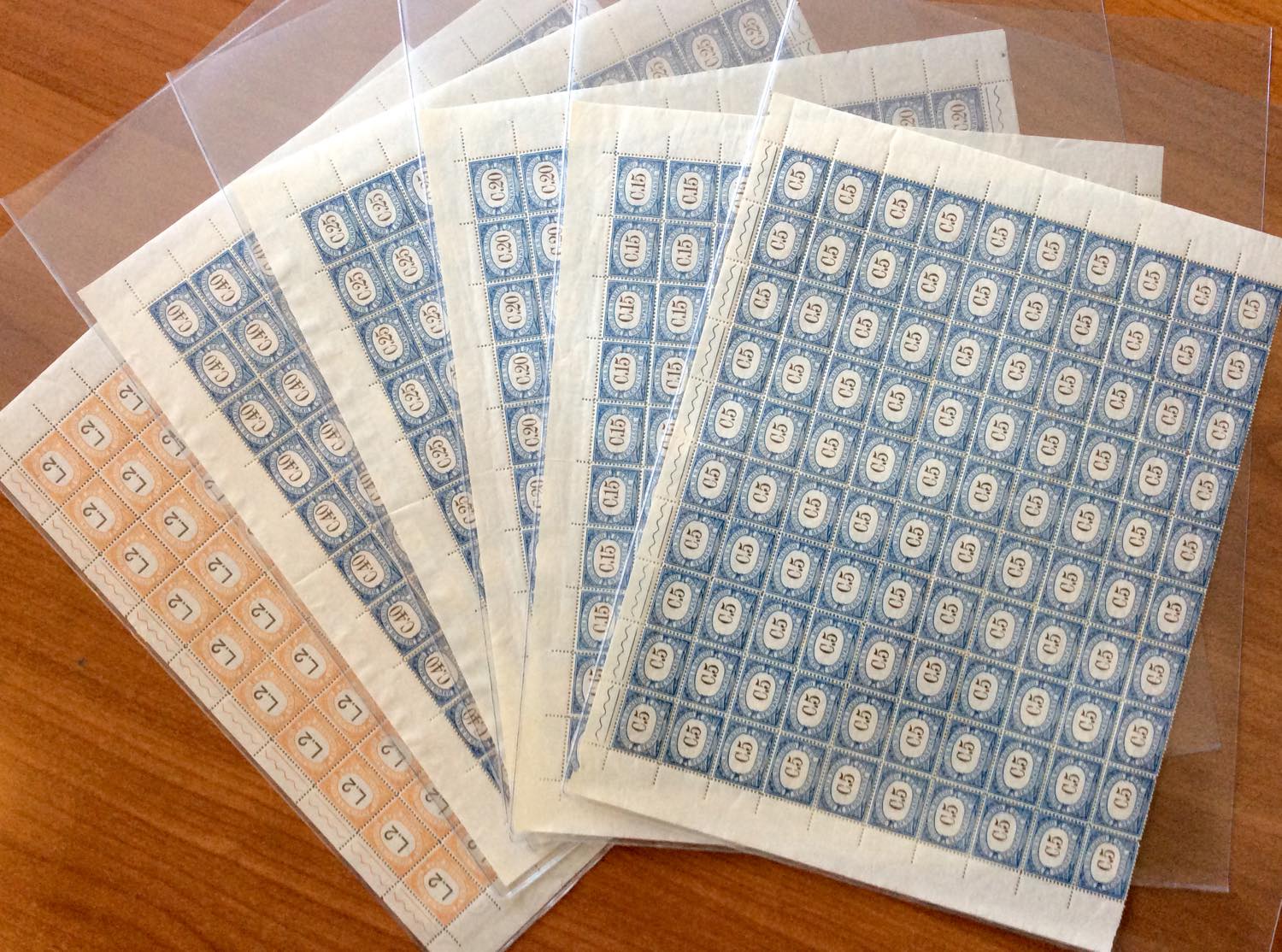 1939 - Serie completa (54/59), in fogli interi di 100 esemplari, gomma originale integra, perfetti e di ottima qualità. Molto rari, tra i pochissimi rimasti ancora interi.