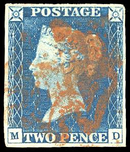 GRAN BRETAGNA 1840 - 2 p. azzurro (2), M-D, usato, perfetto. Ferrario.