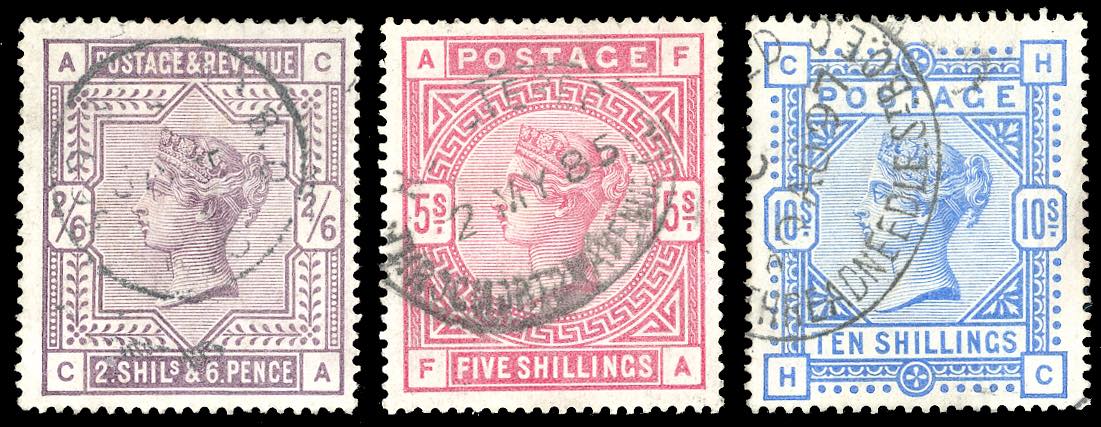 GRAN BRETAGNA 1883/84 - Alti valori, serie completa (Unif.86/88), usati, perfetti.
