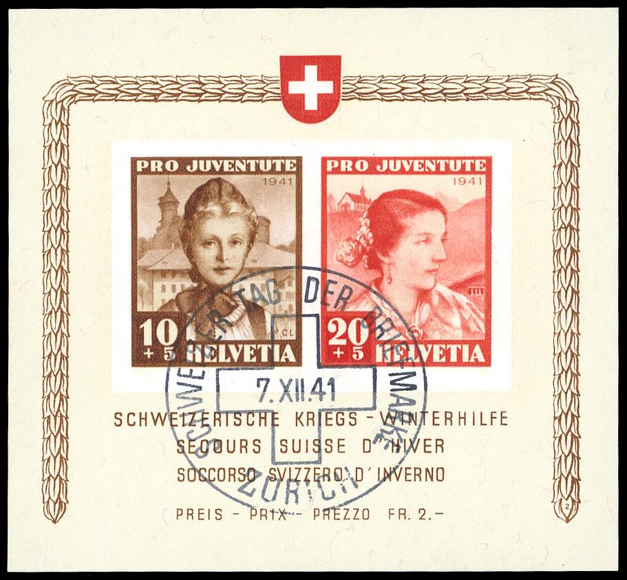 Lotto 2816 - SVIZZERA FOGLIETTI 1941 - Soccorso Invernale (Unif.BF6), ...