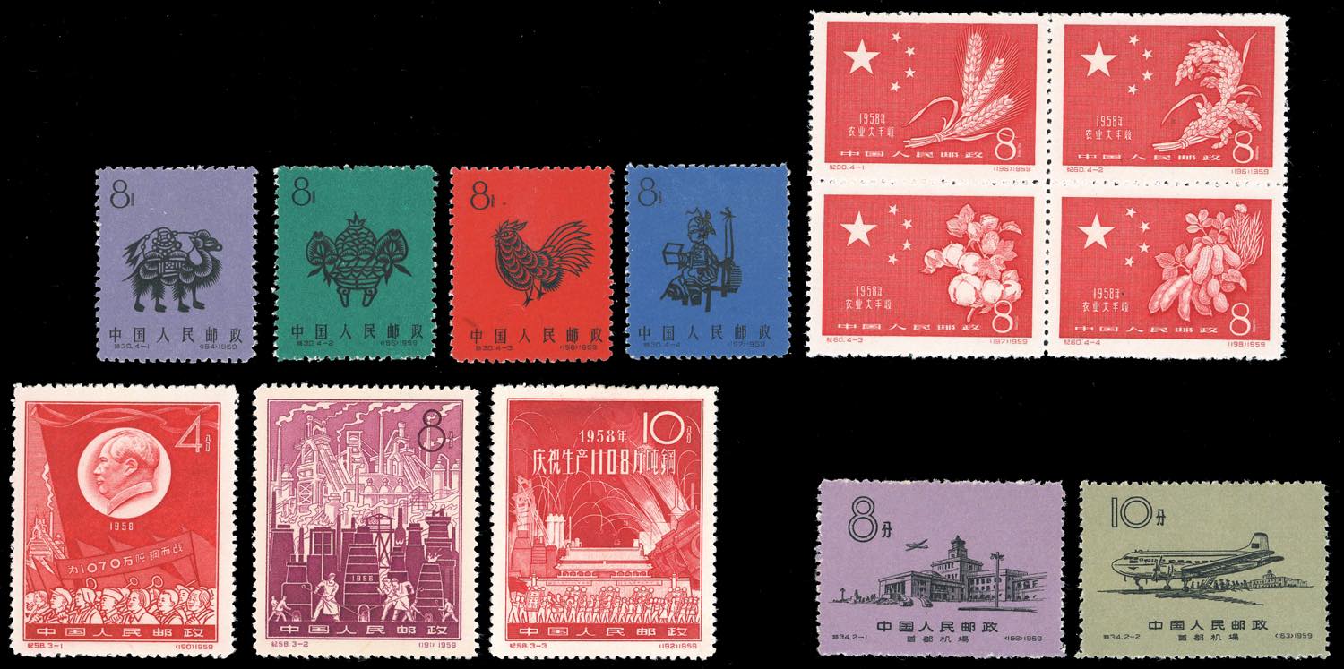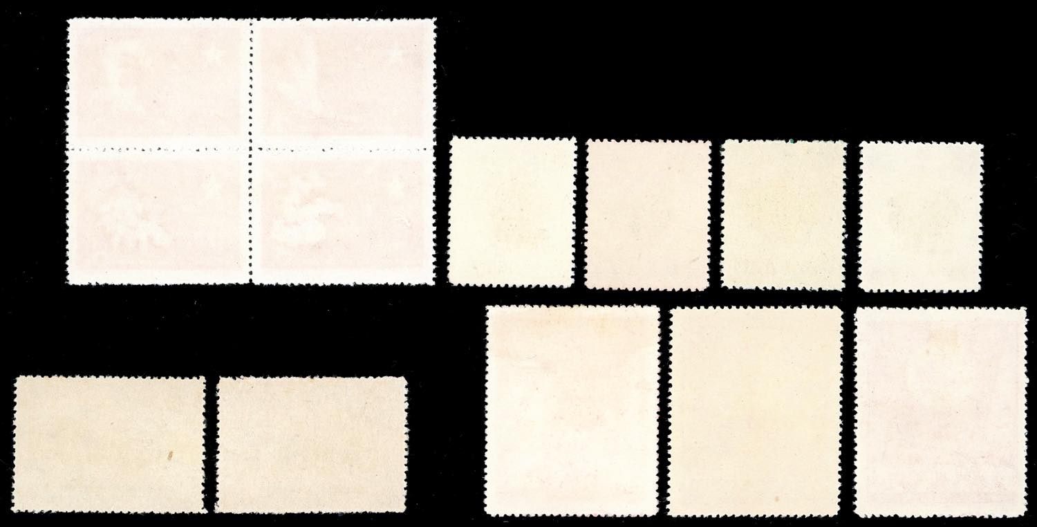 1959 - Four complete sets of the period (Mi.426/429,430/432,437/440,444/445), without gum as issued, perfect conditions, very fine.