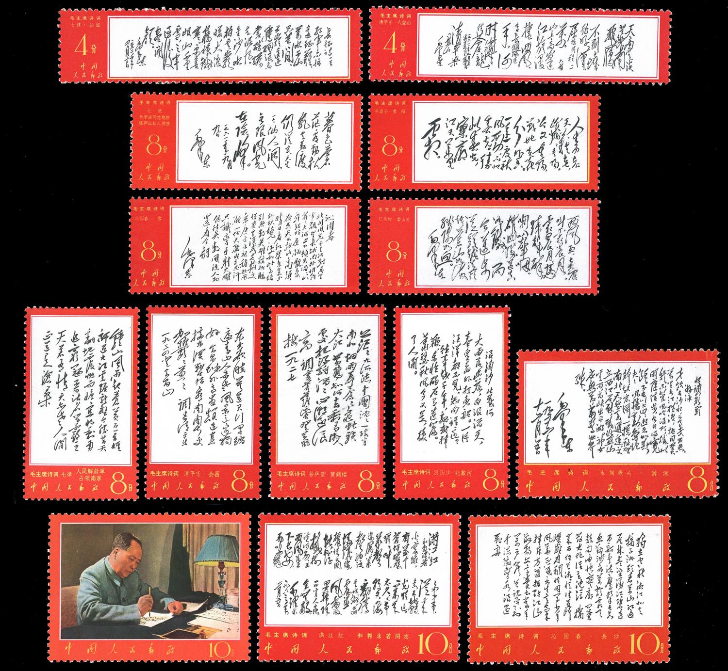 1967 - Chairman Mao's Poems, complete set (Mi.995/1008), full original gum, MNH, perfect conditions, high quality. Rare.