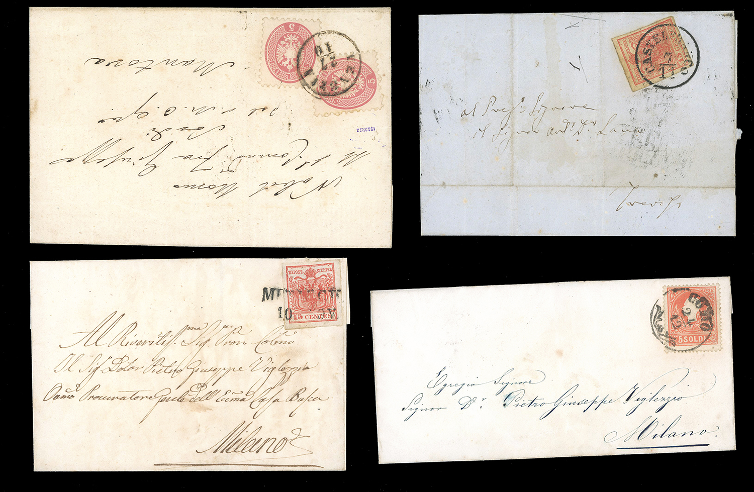 LOMBARDO VENETO 1850/1866 - Otto lettere variamente affrancate del periodo, qualità mista.