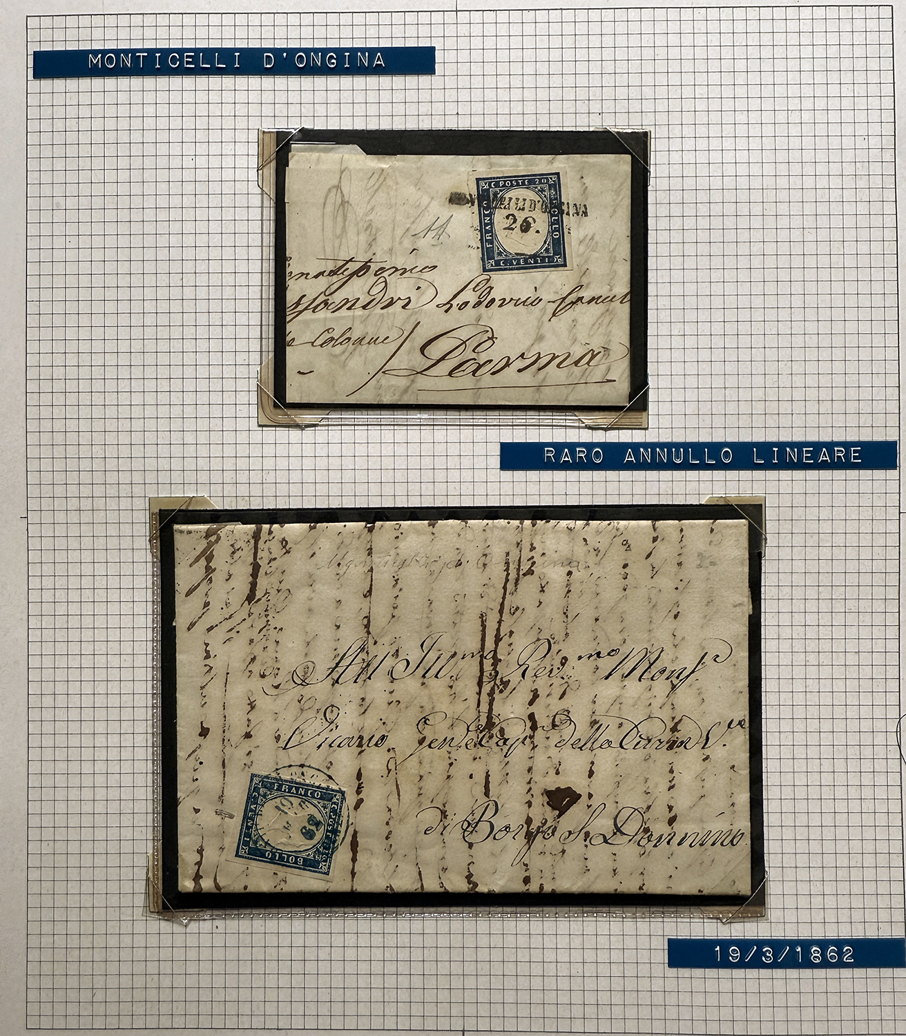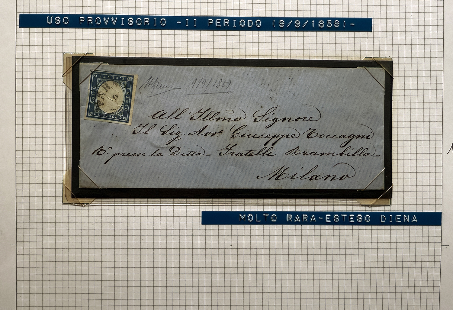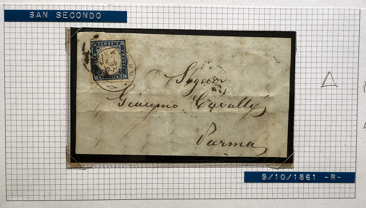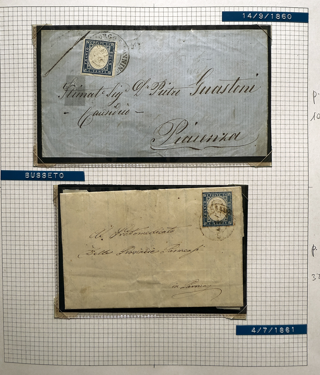 PARMA ANNULLAMENTI SU SARDEGNA 1859/1862 - Bell'insieme di lettere affrancate con francobolli della IV emissione di Sardegna con annulli, anche rari, differenti. Notata una lettera da Pama 9/9/1859 a Milano durante il Governo Provvisorio. Collezione inedita negli anni '60. Insieme raro.