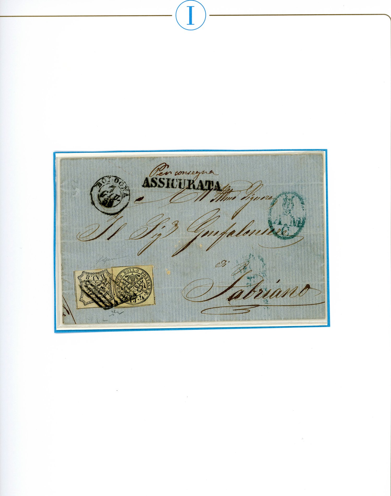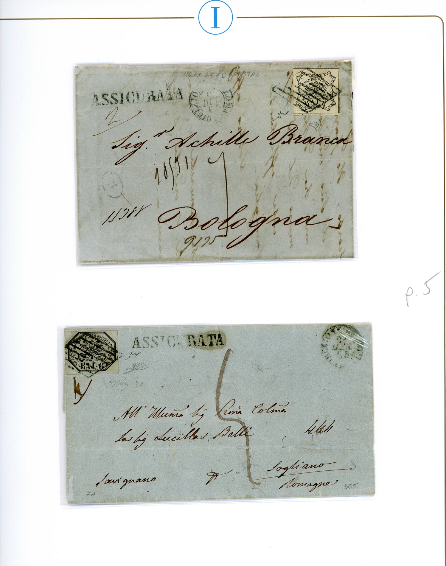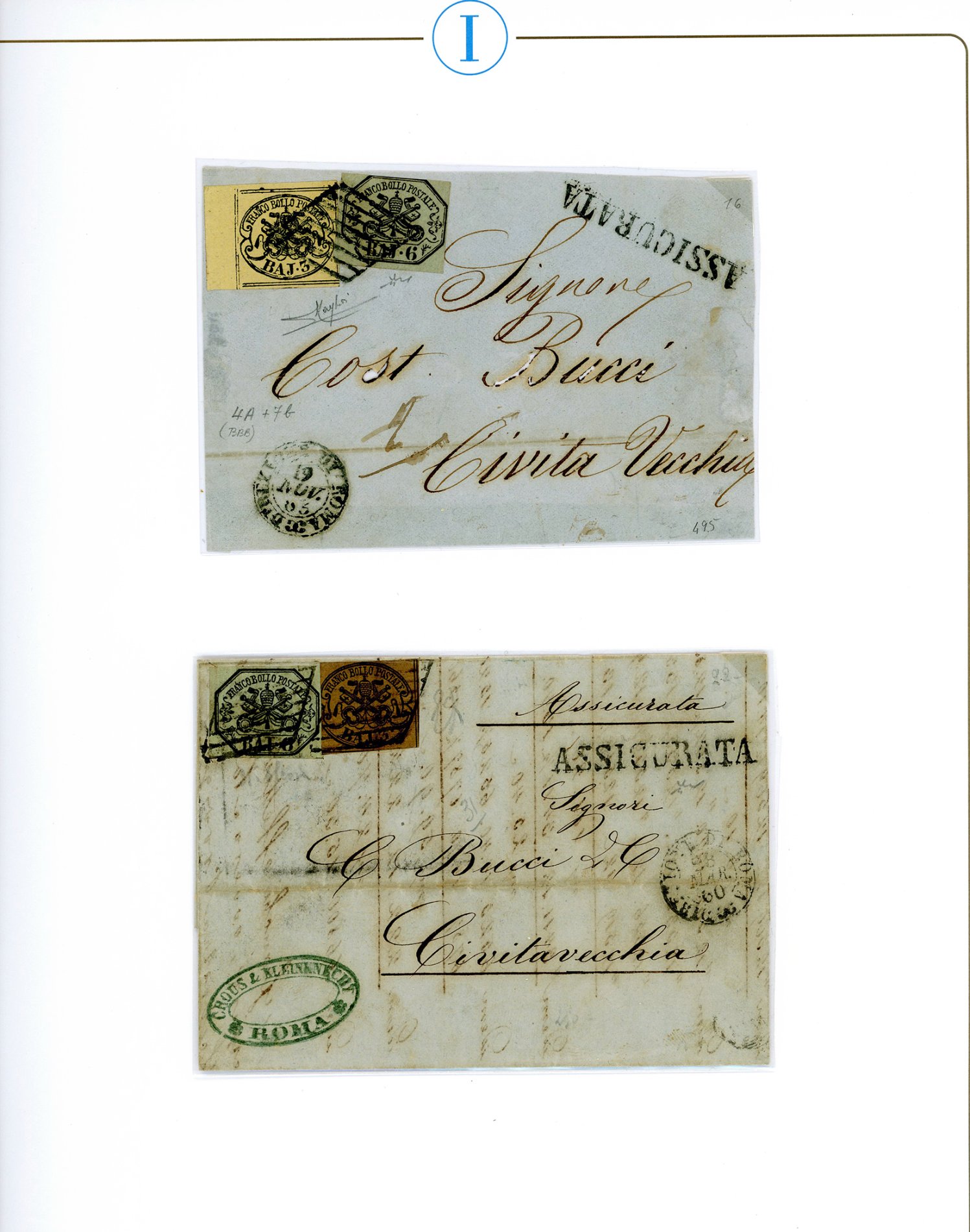 STATO PONTIFICIO 1852/1865 - Bell'insieme di 10 lettere assicurate, tutte variamente affrancate con francobolli in bajocchi. Buona qualità generale. Ottimo per dettaglio. Ex collezione Imperato.