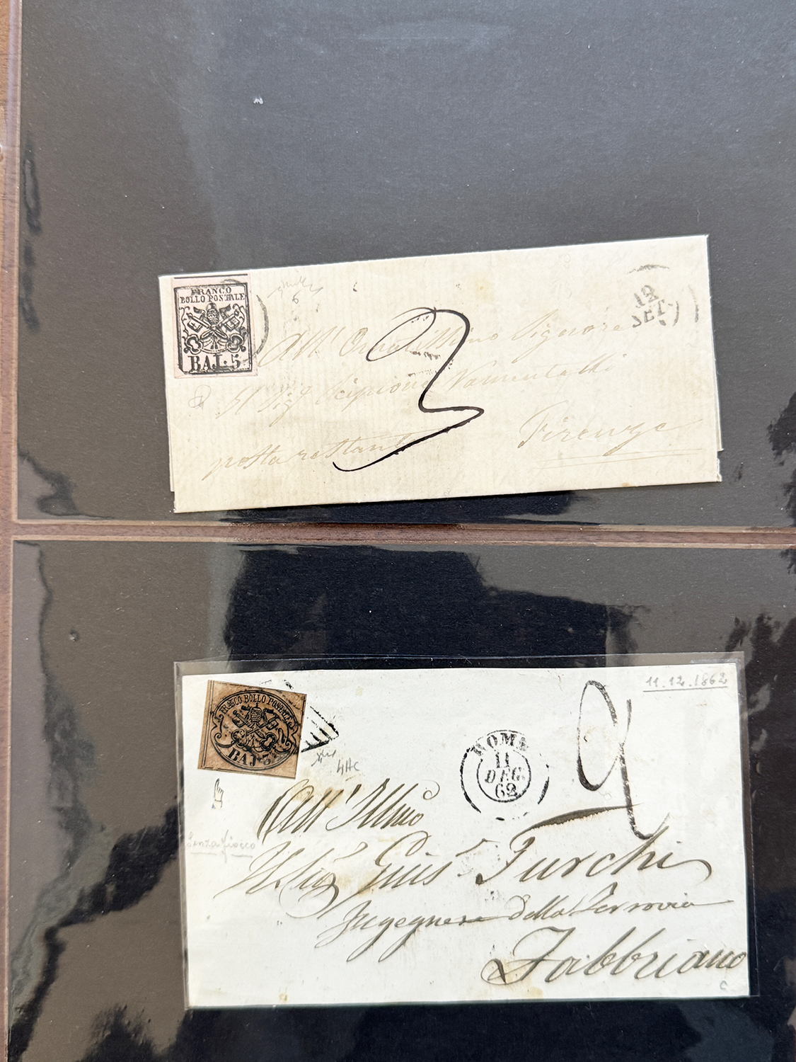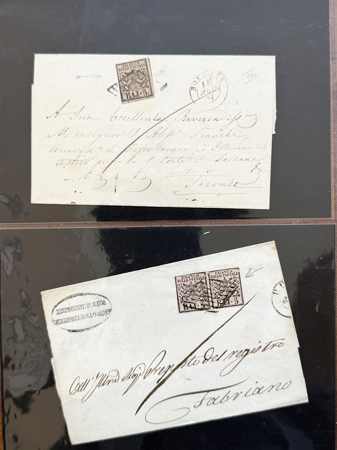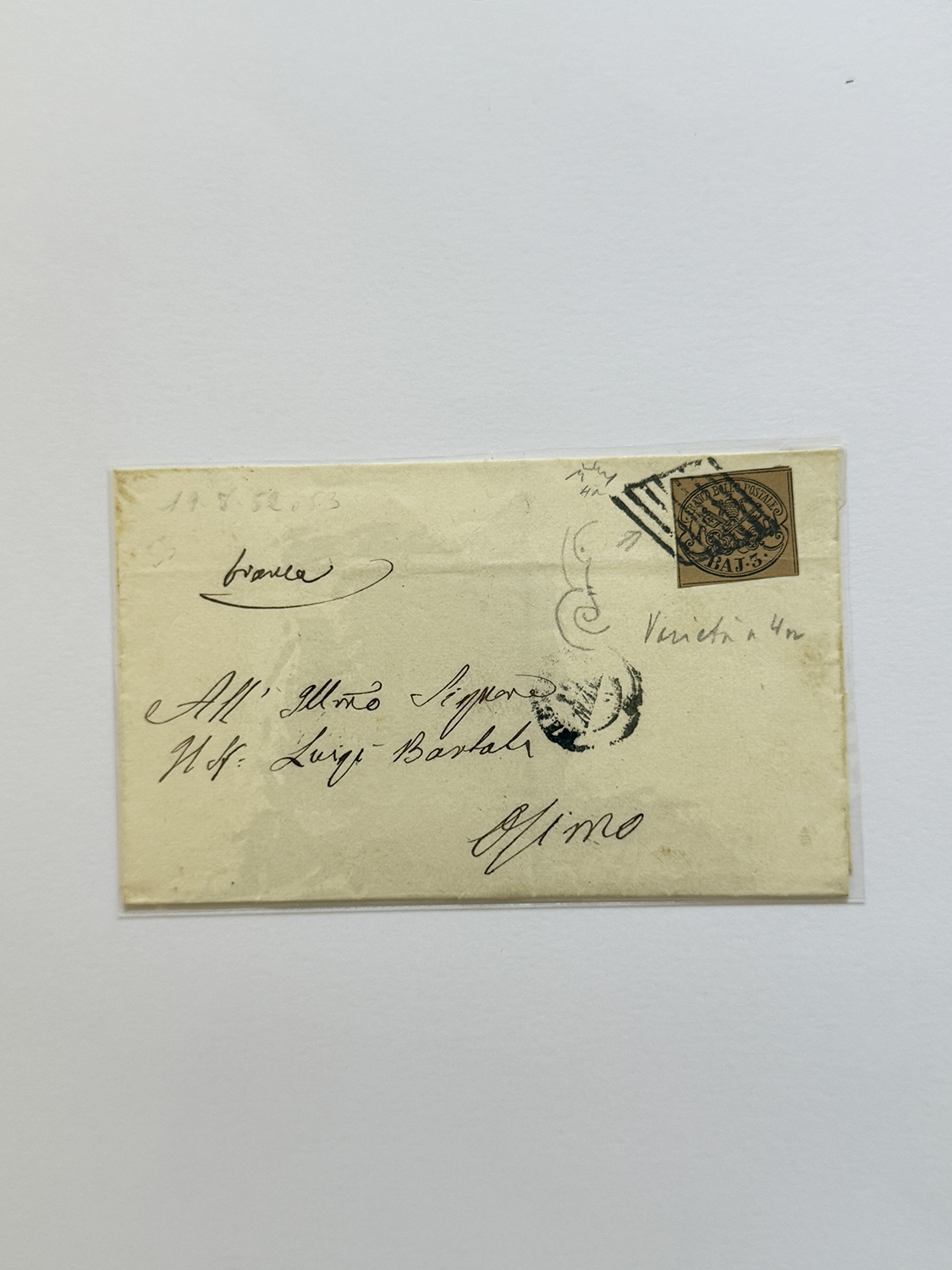 STATO PONTIFICIO 1852/1867 - Bella collezione di varietà di clichè sui francobolli della I emissione, prevalentemente su lettera. Insieme di difficile reperibilità, ottima sia per studio che per dettaglio. Ex collezione Imperato.