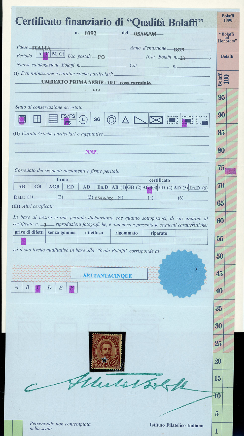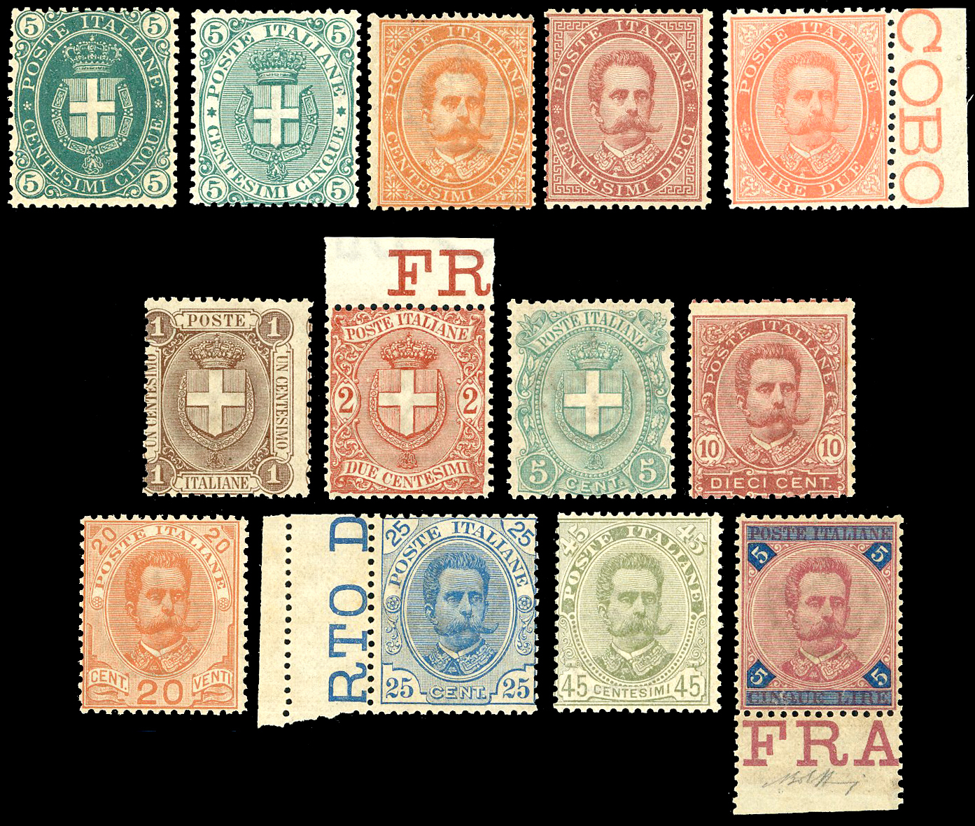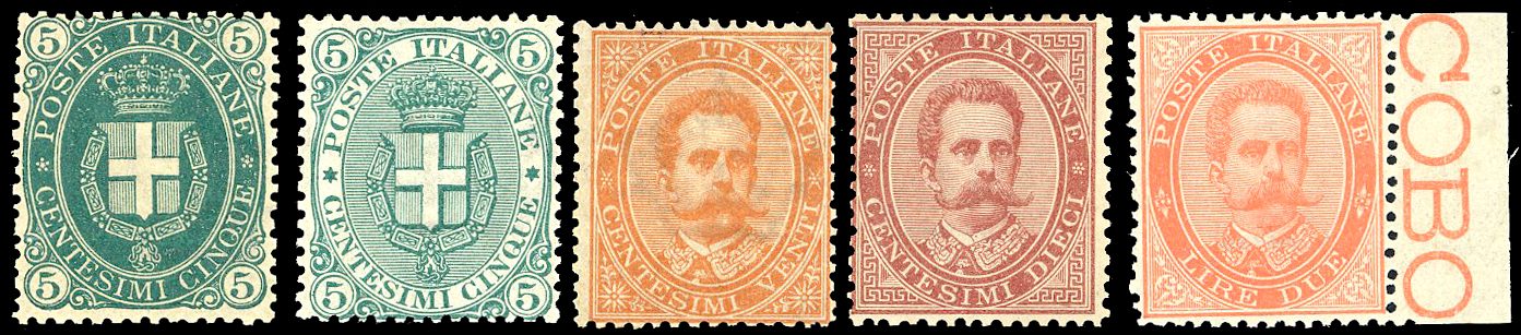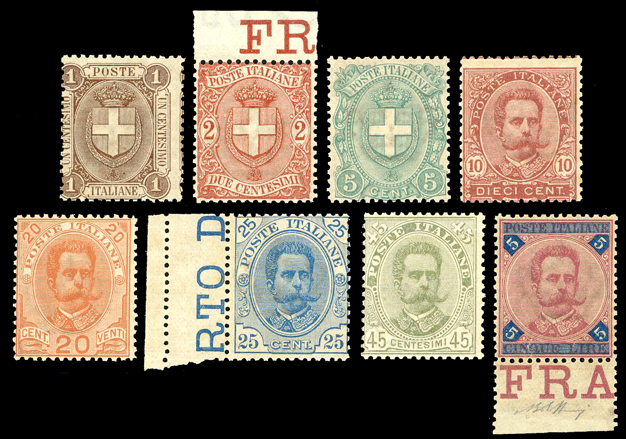 1879/97 - Piccolo insieme di esemplari del periodo (38,39,43,44,59/64,65/67), nuovi, gomma originale integra, perfetti e di ottima qualità. Quattro certificati Finanziari Bolaffi 70/75%.