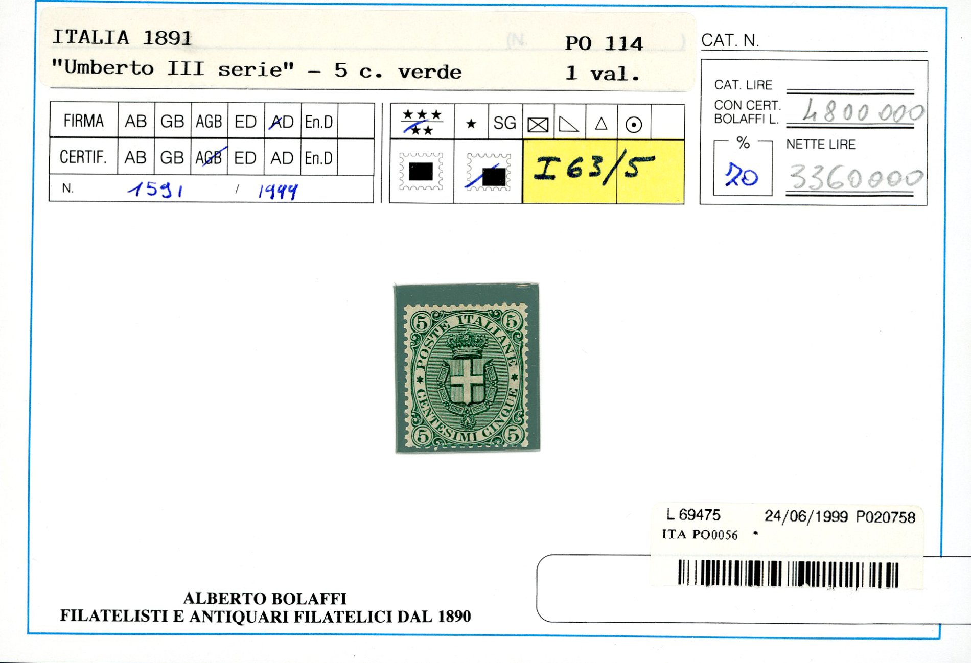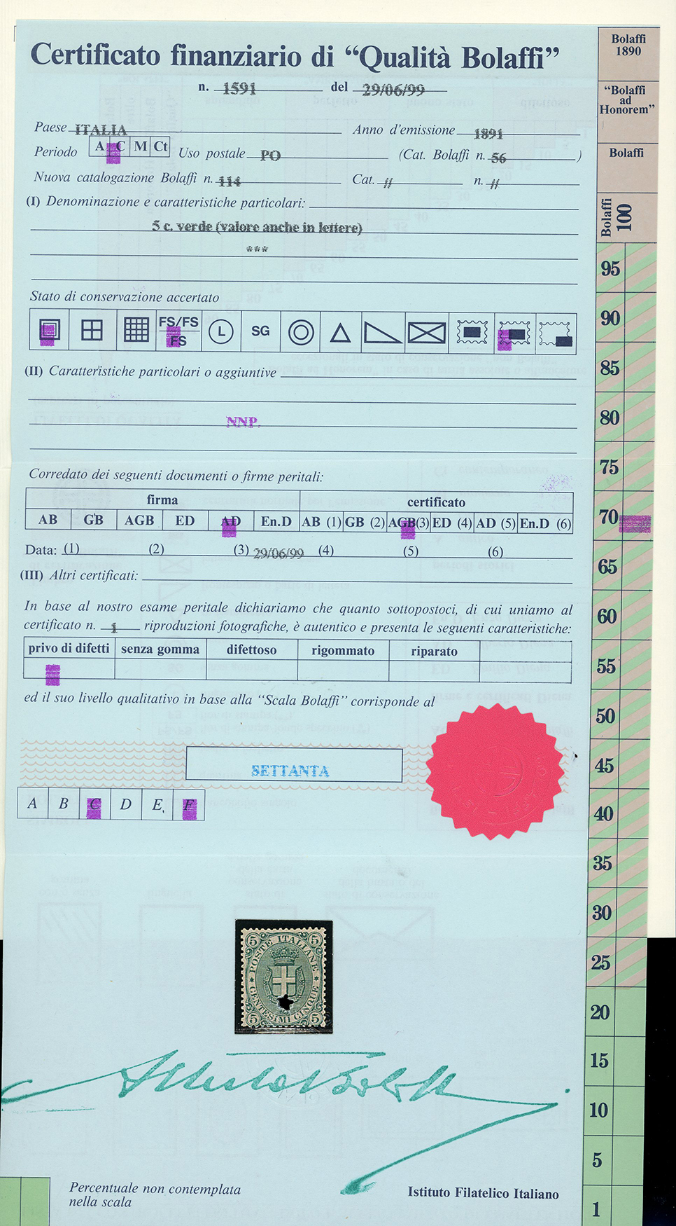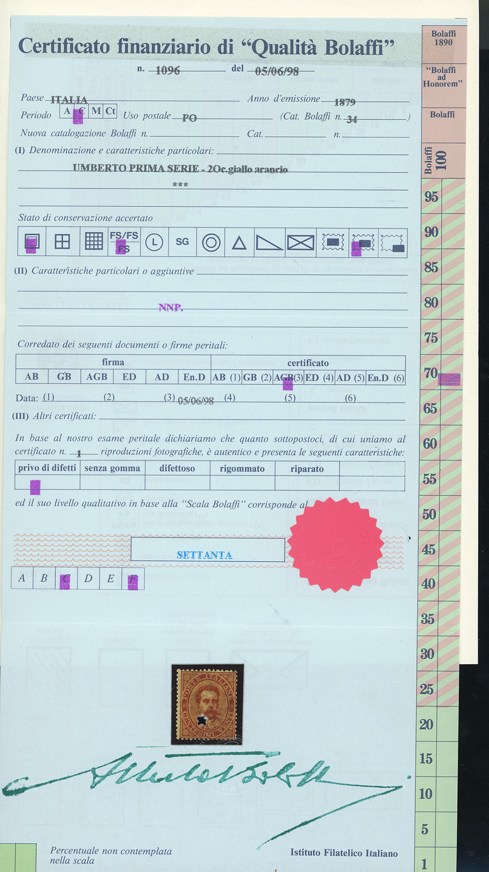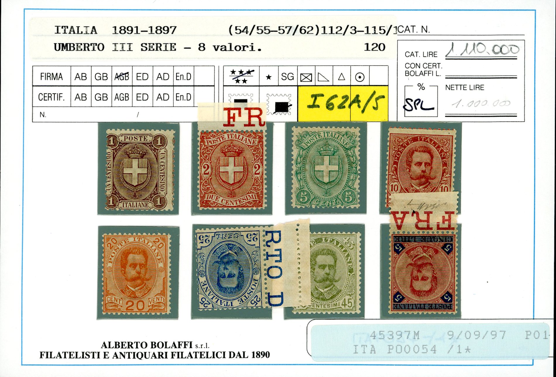 1879/97 - Piccolo insieme di esemplari del periodo (38,39,43,44,59/64,65/67), nuovi, gomma originale integra, perfetti e di ottima qualità. Quattro certificati Finanziari Bolaffi 70/75%.