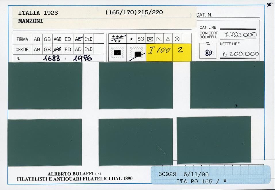 Lotto 333 - 1923 - Manzoni, serie completa (151/156), il 5 lire con ...