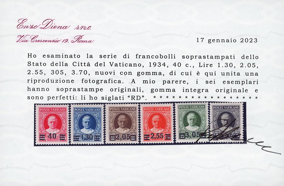 1934 - Provvisoria, serie completa (35/40), buona/ottima centratura, nuovi, gomma originale integra, perfetti. Cert. Diena (cat.Sassone € 4.000/6.000).