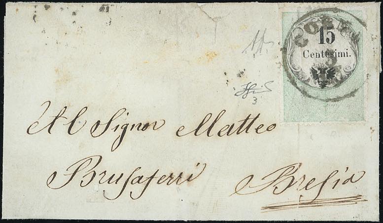 CORNA, C1 punti 12 - 15 cent. marca da bollo tipografica (3), perfetta, su sovracoperta di lettera del 8/10 per Brescia. Piega antecedente ... Leggi tutto
