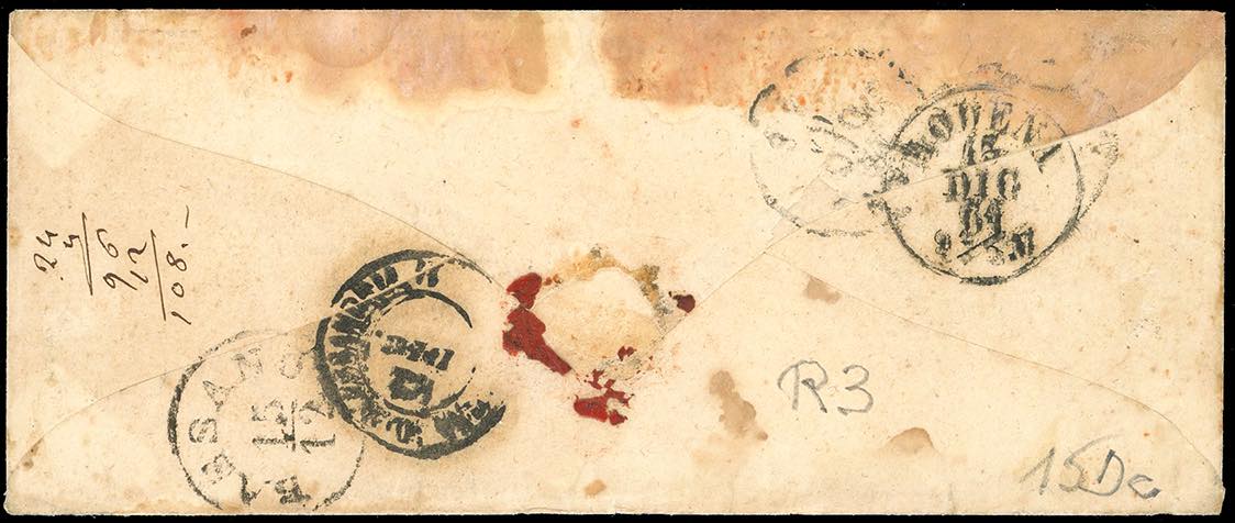 ZOCCA, manoscritto punti R3 - 20 cent. IV emissione di Sardegna (15Dc), perfetto, su busta per Bassano 15/12/1862, tassata 10 soldi in ... Leggi tutto