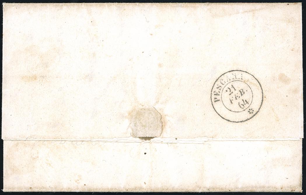PIANELLA, a penna punti 13 - 5 cent. De La Rue (L16), perfetto, su lettera del 21/2/1864 per Castellamare Adriatico. Rarità del settore, il catalogo Sassone segnala una sola lettera nota con questo annullo. A.Diena, Vaccari, cert. Ferrario.