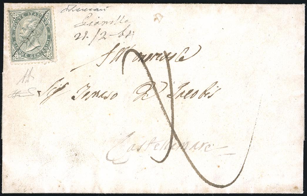 PIANELLA, a penna punti 13 - 5 cent. De La Rue (L16), perfetto, su lettera del 21/2/1864 per Castellamare Adriatico. Rarità del settore, ... Leggi tutto