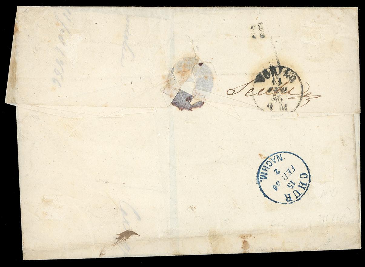 Lotto 305 - 1854/56 - Rarissimo insieme di tre lettere d'archivio per ...