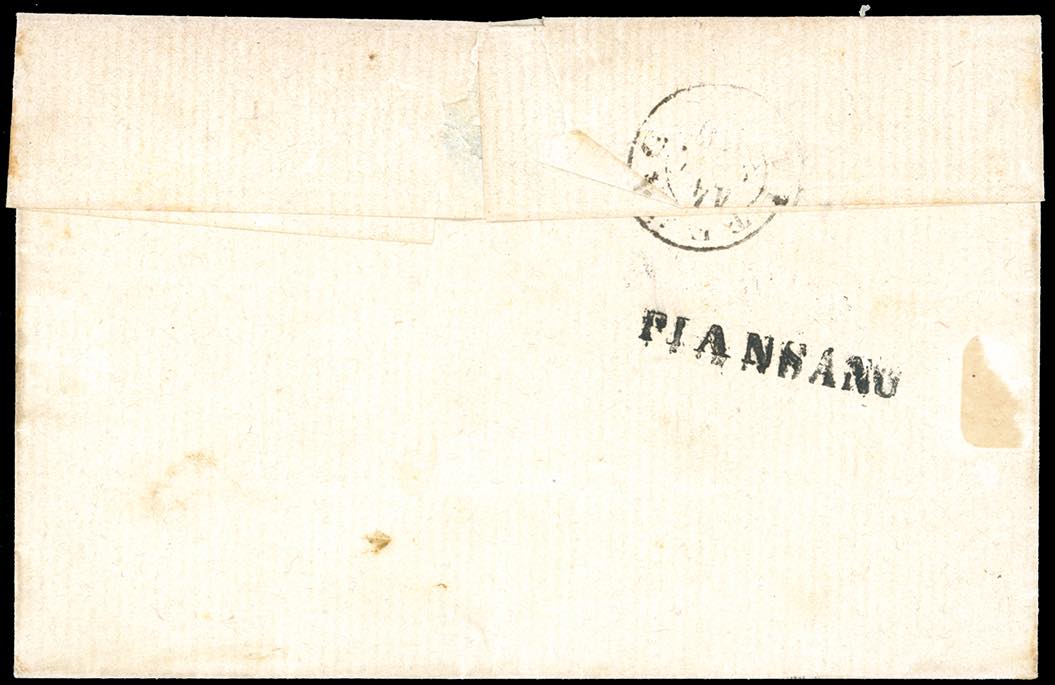 1866 - 2 baj grigio azzurrastro (3Ab), coppia verticale con interspazio orizzontale di gruppo al centro e mostrante a sinistra parte dell'interspazio verticale, "cuore del foglio", perfetta, su fresca lettera da Piansano, lineare al verso, a Viterbo, francobolli annullati in transito a Toscanella con il caratteristico bollo circolare. Insieme unico! E.Diena, Vaccari. Ex. Coll. Imperato.