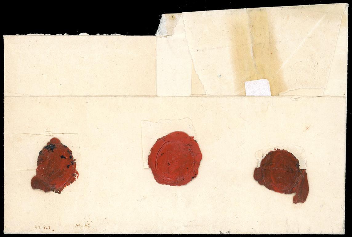 ROMA, penna + assicurata manoscritto, non catalogato - 8 baj (9), coppia difettosa, e singolo, perfetto, su assicurata da Roma 1/4/1853 a Torino, bollo PD in rosso. Combinazione di annulli ad oggi inedita. Rara. Ferrario.