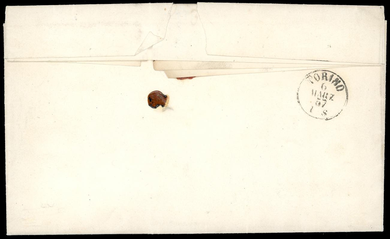 Lotto 522 - 1857 - 40 cent. rosa (6), perfetto, su lettera da Racconigi ...