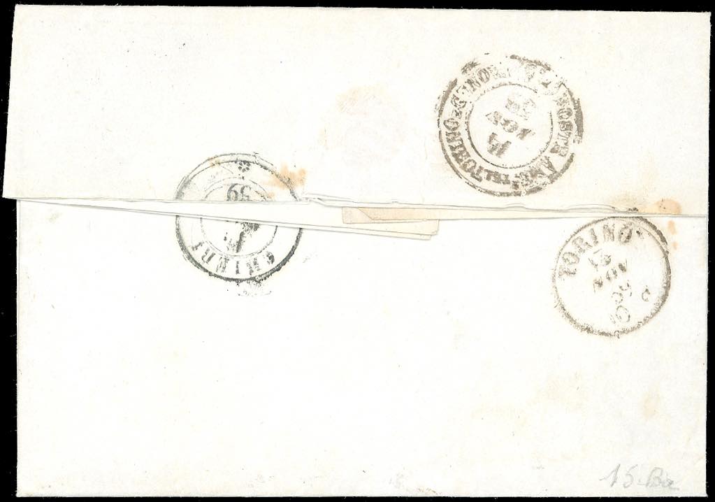 PIEMONTE-LAGNASCO, punti 13 - 20 cent. (15Ba), perfetto, su fresca lettera del 12/11/1859 per Chieri. Raro annullo, quasi sempre poco leggibile. Cert. Colla.