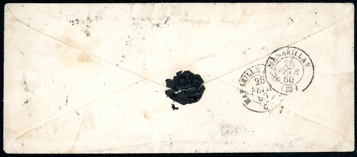1860 - 20 cent. azzurro grigio, striscia di tre (20b), appena sfiorata a sinistra, su fresca bustina da Firenze 20/2/1860 a Marseillan in ... Leggi tutto