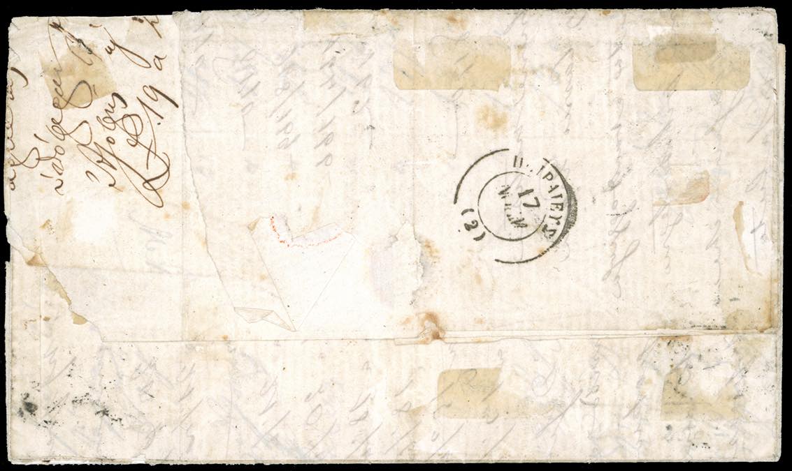 1860 - 80 cent. carnicino (22), tre ottimi margini, intaccato a sinistra, isolato su lettera semplice da Livorno 24/11/1860 ad Idra, in Grecia, tassata 10 lepta in rosso, manoscritto "col vapore postale francese". Non comune. Chiavarello, Ferrario. Ex coll. Imperato.