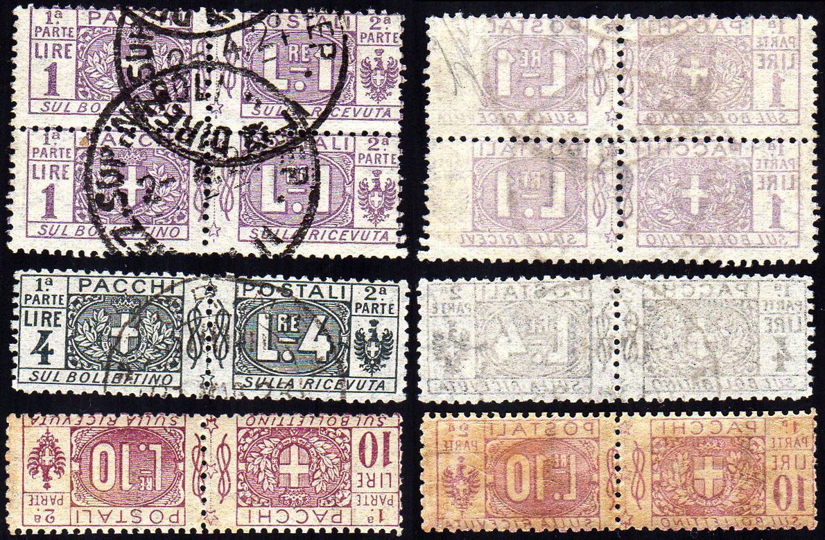 1914 - 1 lira, coppia orizzontale con decalco parziale, 4 lire, 10 lire, entrambi con decalco (12k,15k,16 varietà non catalogata), usati, ... Leggi tutto