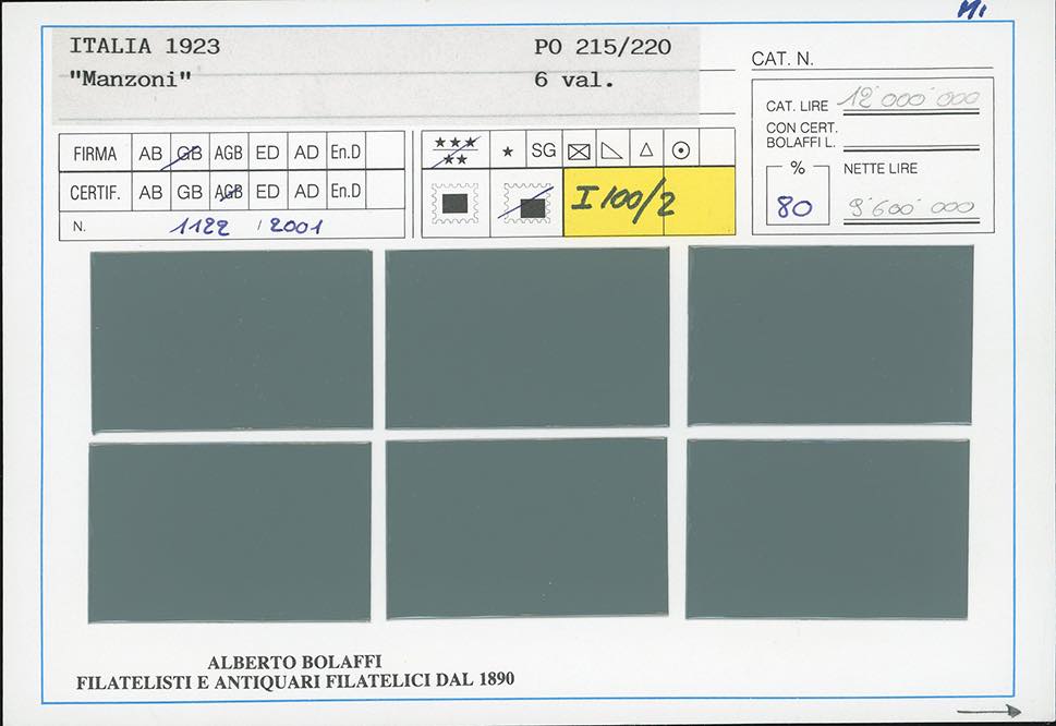 Lotto 993 - 1923 - Manzoni, serie completa (151/156), nuovi, gomma ...
