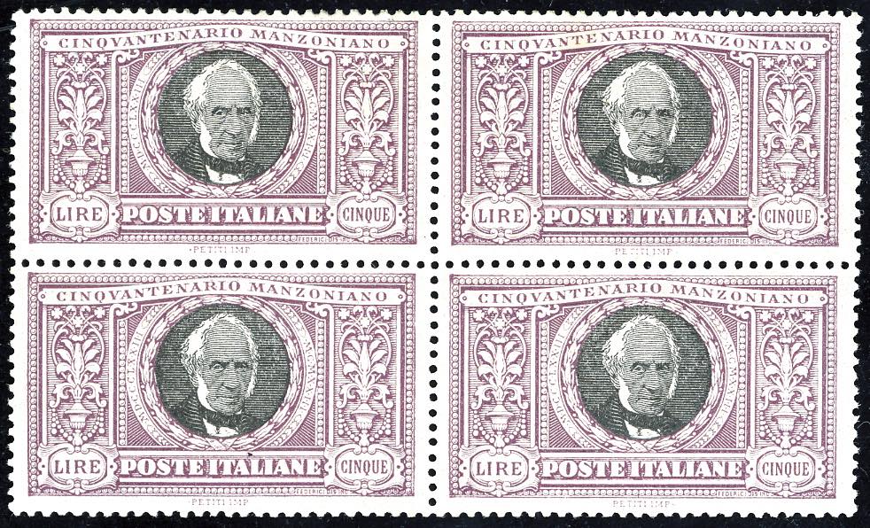 Lotto 1001 - 1923 - 5 lire Manzoni, blocco di quattro (156), nuovo, ...