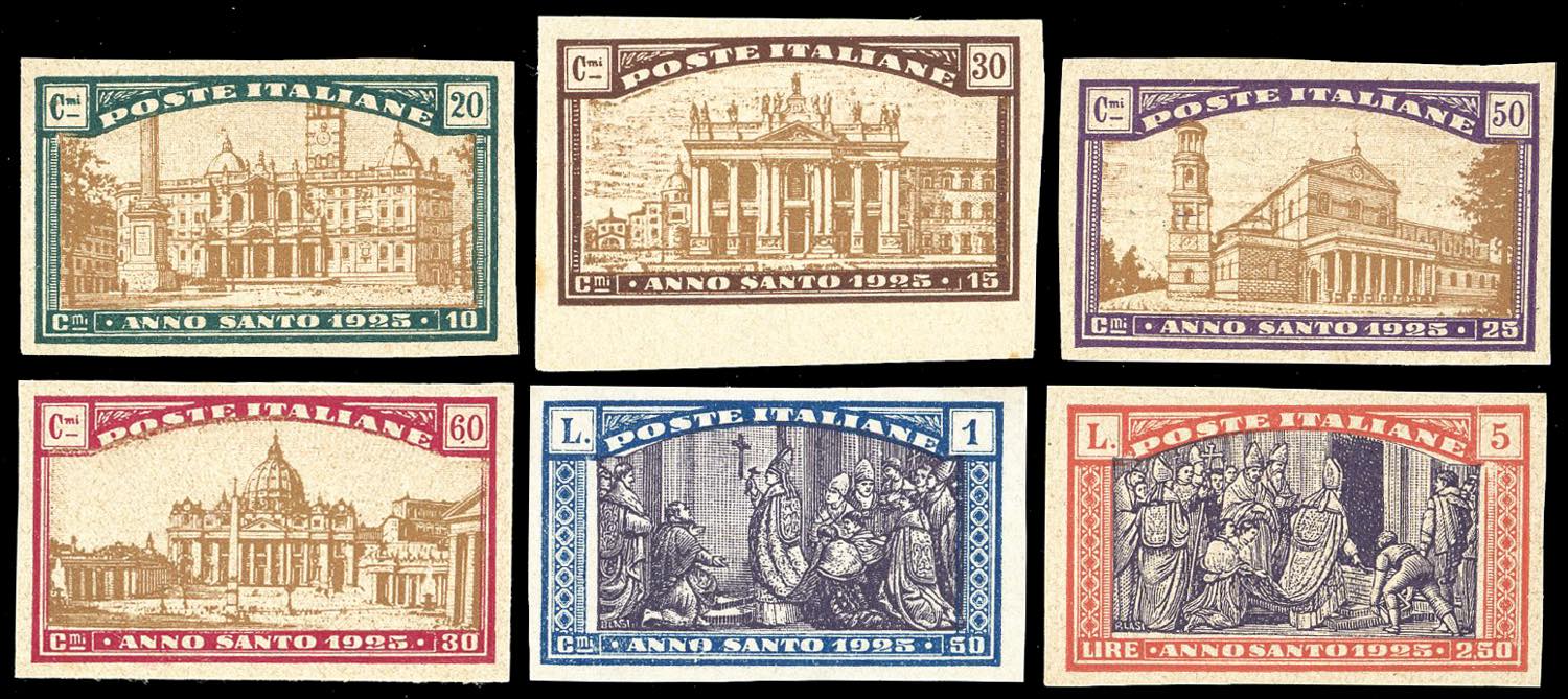 1924 - Anno Santo, prove di macchina, serie completa (169/174), nuove, senza gomma come sempre, perfette. Ferrario.