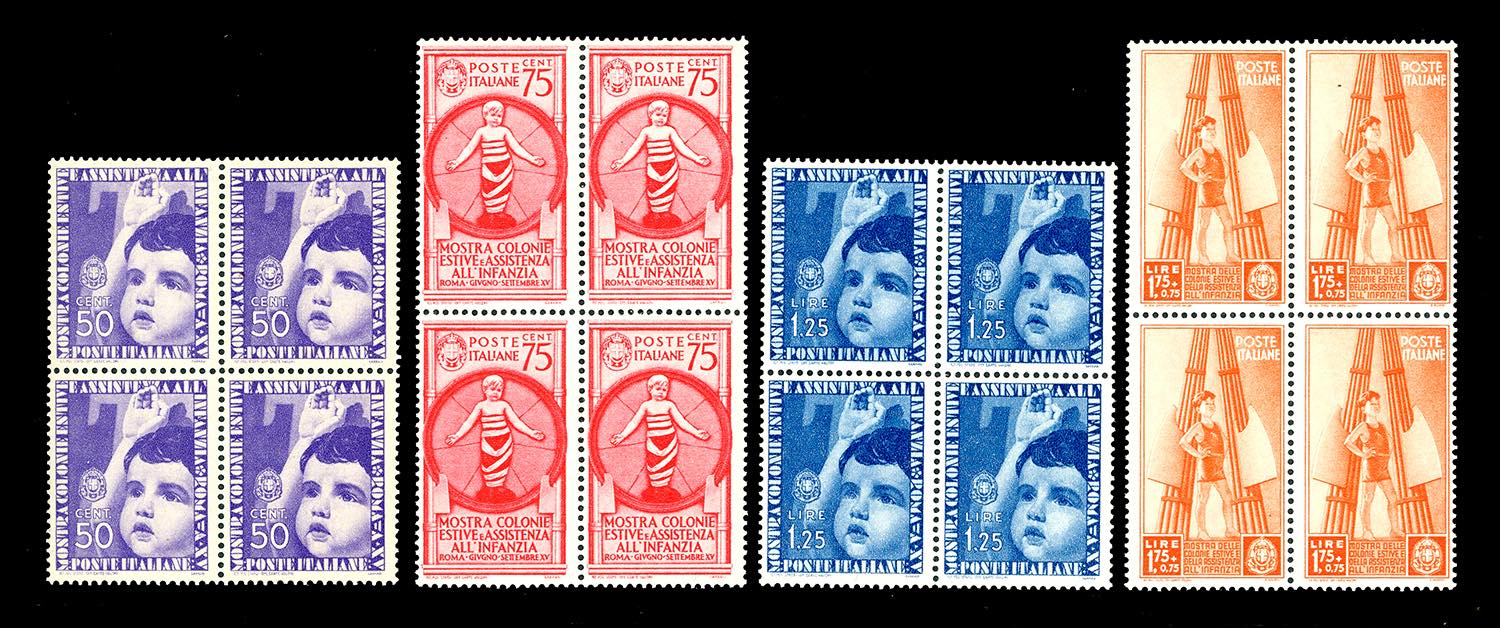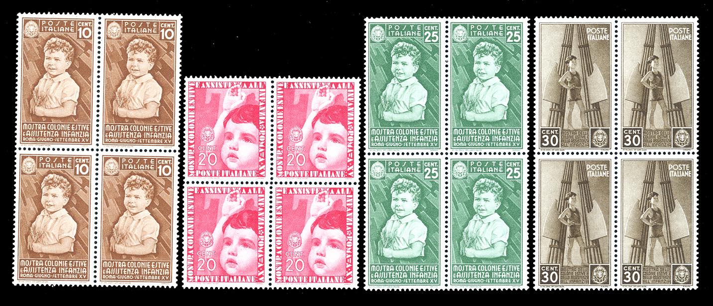 Lotto 1063 - 1937 - Colonie Estive, serie completa (406/415+A), blocchi ...