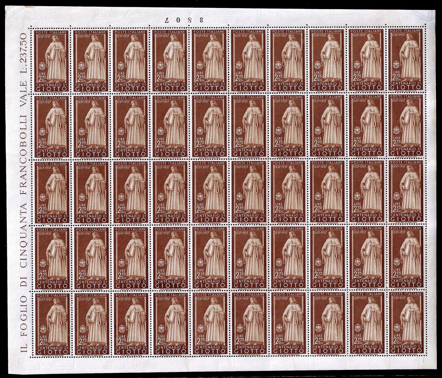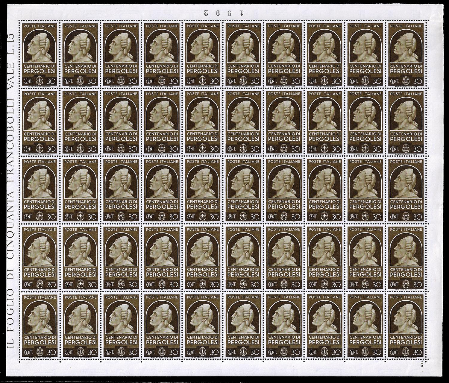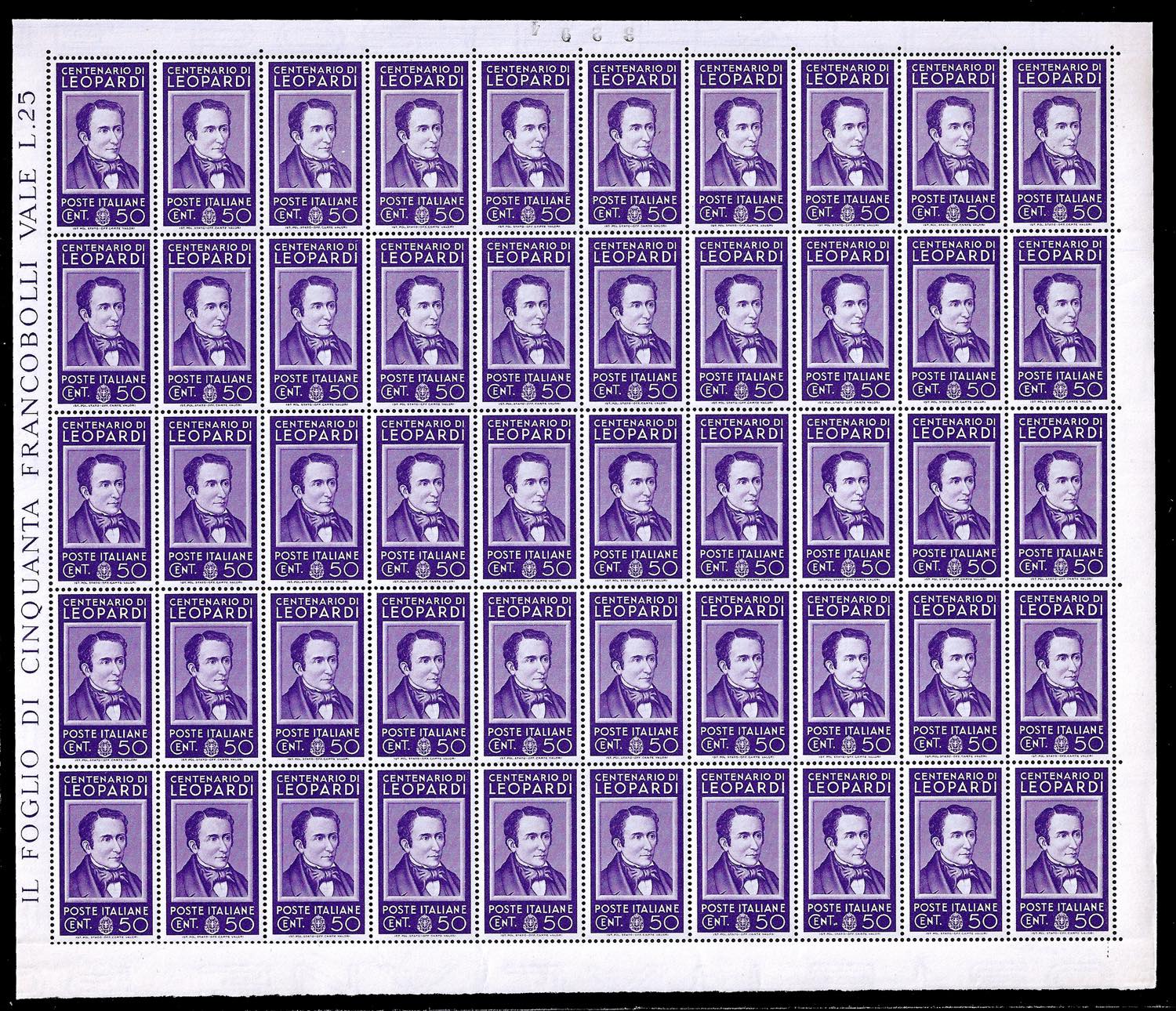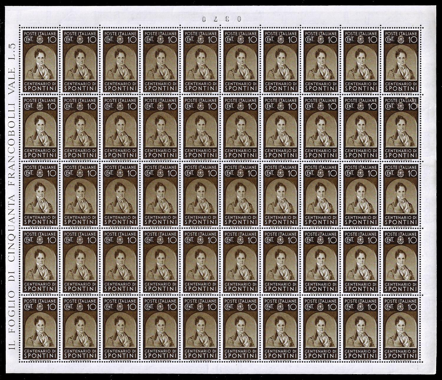 1937 - Uomini illustri, serie completa (426/435), fogli completi di 50 esemplari, nuovi, gomma originale integra, perfetti e di ottima qualità.