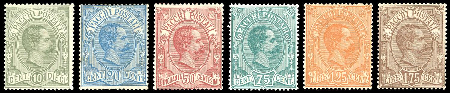 1884/86 - Umberto I, serie completa (1/6), nuovi, gomma originale integra, perfetti. Cert. Diena per i n. 1 e 2.