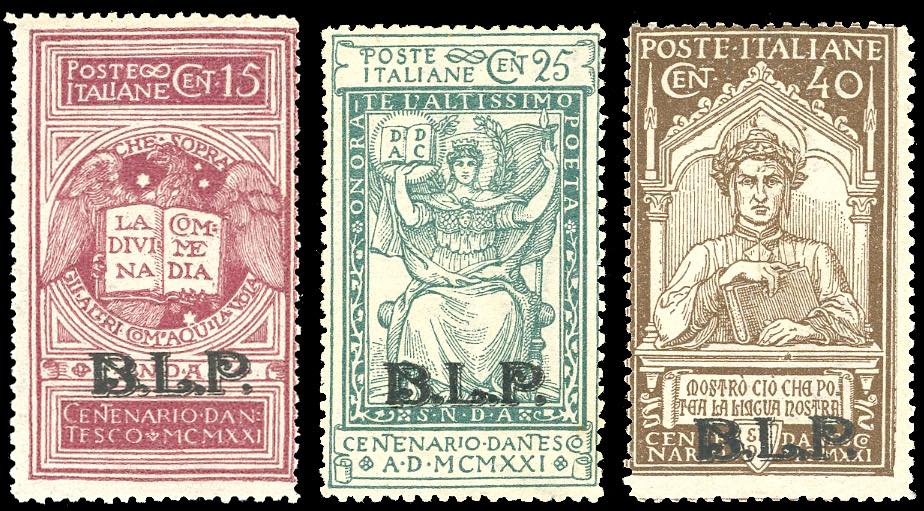 1922 - Dante, soprastampati BLP, non emessi, serie completa (19/21), gomma originale integra, perfetti. Molto rari, tiratura 50 serie complete. Cert. Diena.
