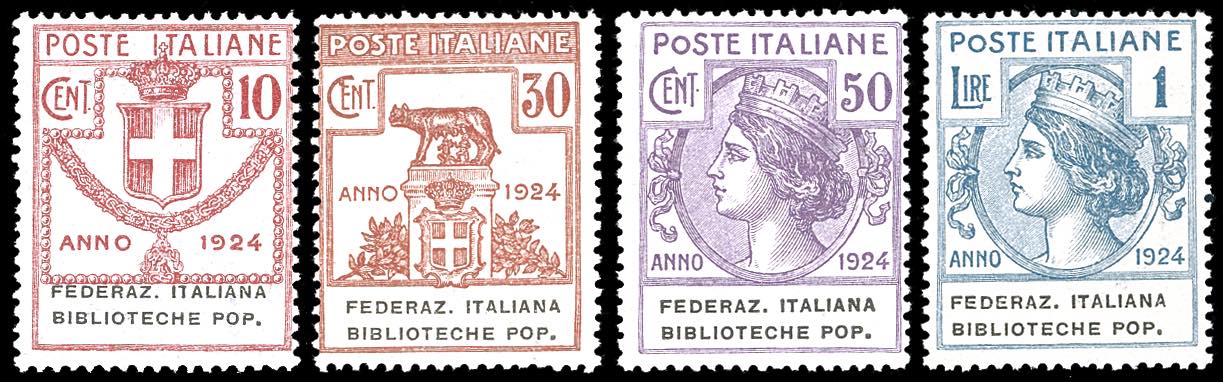 FEDERAZ.ITALIANA BIBLIOTECHE POP. 1924 - Serie completa (34/37), gomma originale integra, perfetti e di ottima qualità. Ferrario.